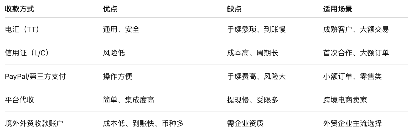 那么问题来了:外贸收款到底有哪些方法? 企业该怎么选择最稳妥、最高效的方式?