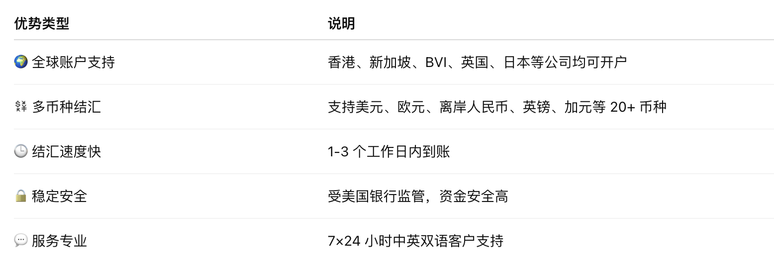 比如通过 CBiBank(美国商业银行) 开立企业账户,企业可直接收取美元、欧元、离岸人民币等多币种款项,并根据资金安排选择何时结汇。